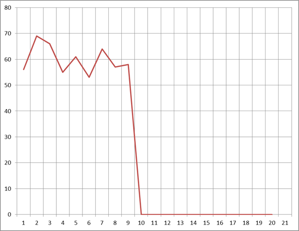 | Elke | 9 | 375 | 62,50 | 69 | 66 | 64 | 61 | 58 | 57 | 9 | 0 | 0 | 3 | ||||||
